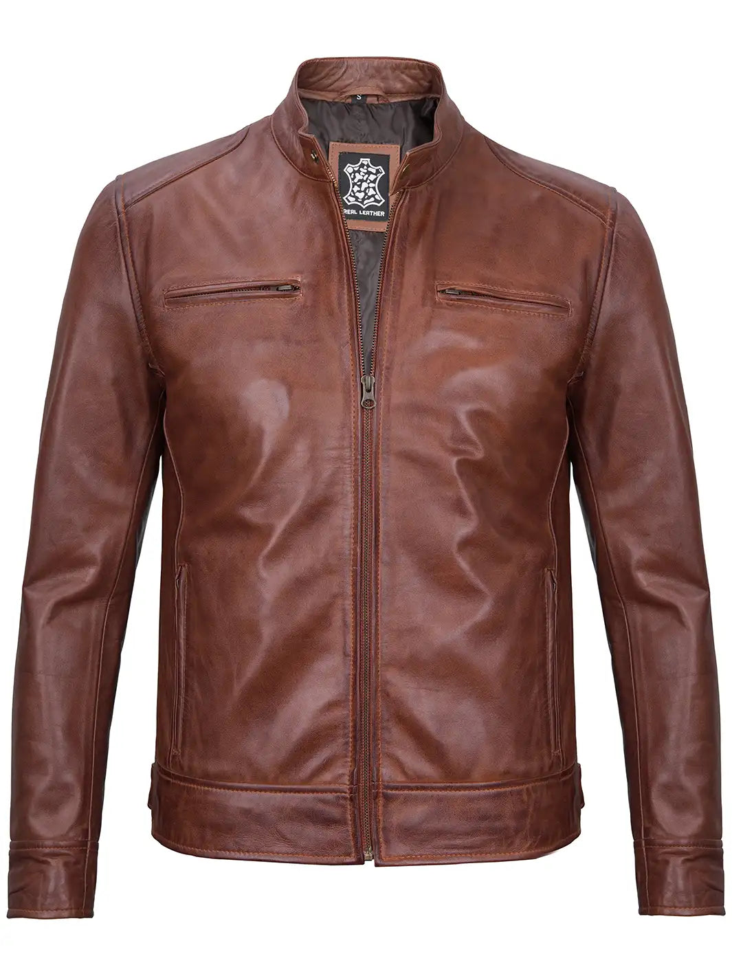 Dodge Veste en cuir Cognac Cafe Racer pour homme