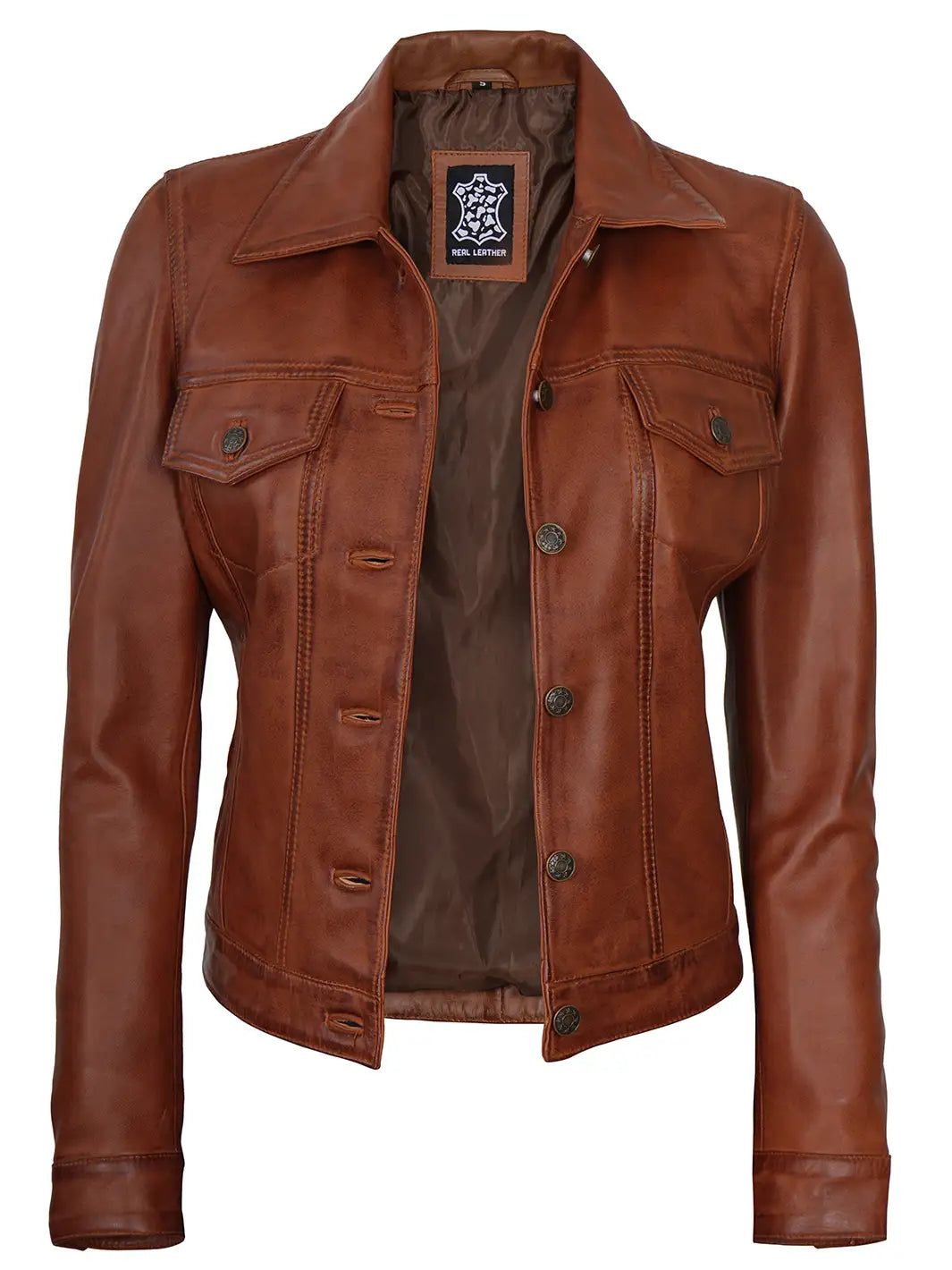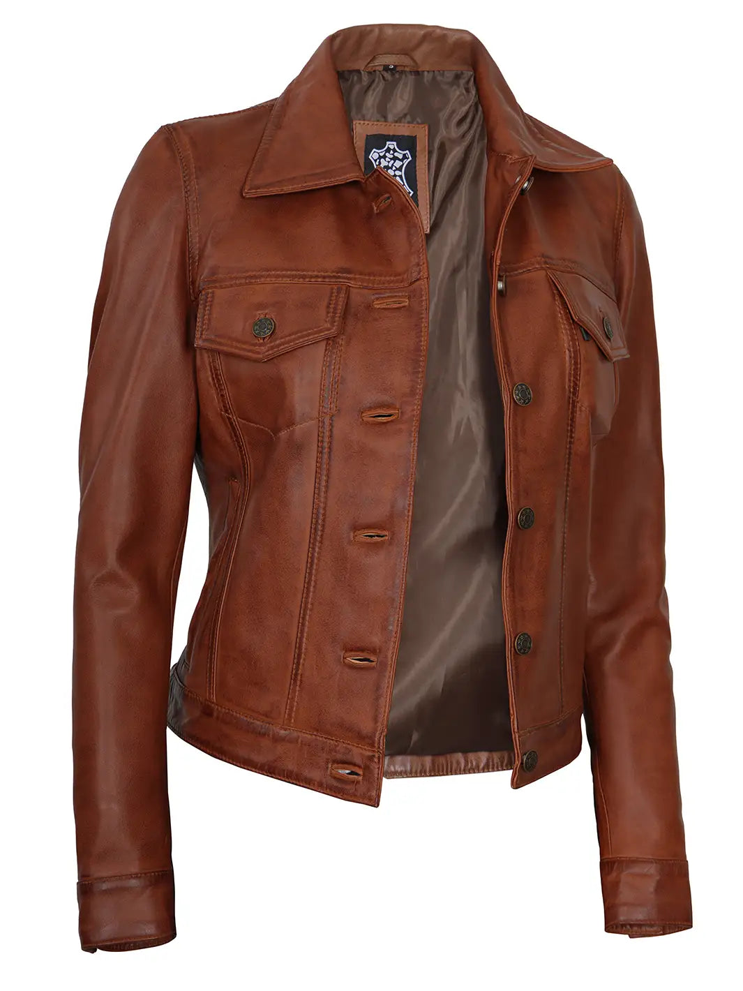 Fernando de camionneur en cuir marron cognac pour veste cuir femme