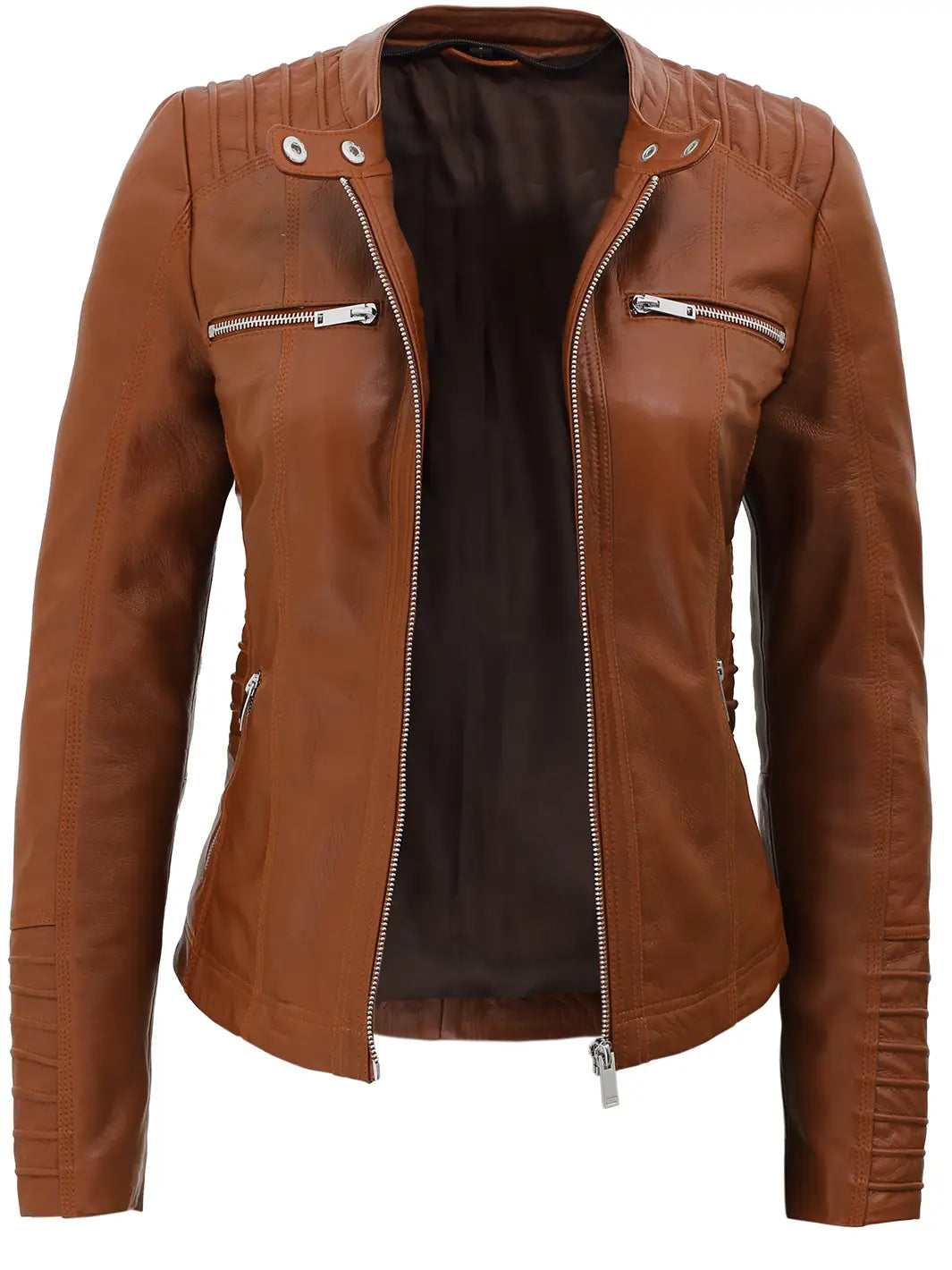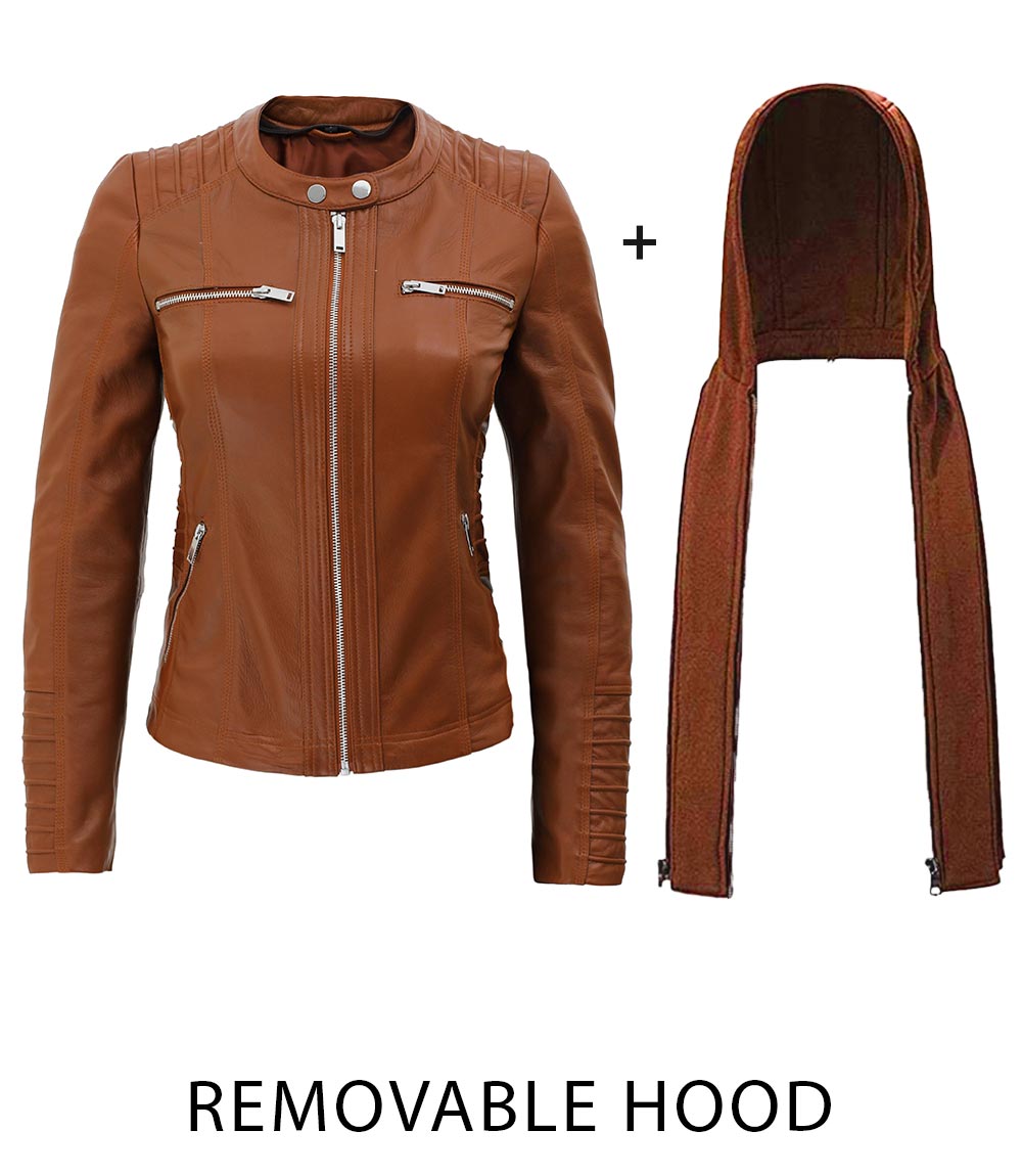 Pour Femme Marron Cognac Cuir Veste avec Capuche Amovible